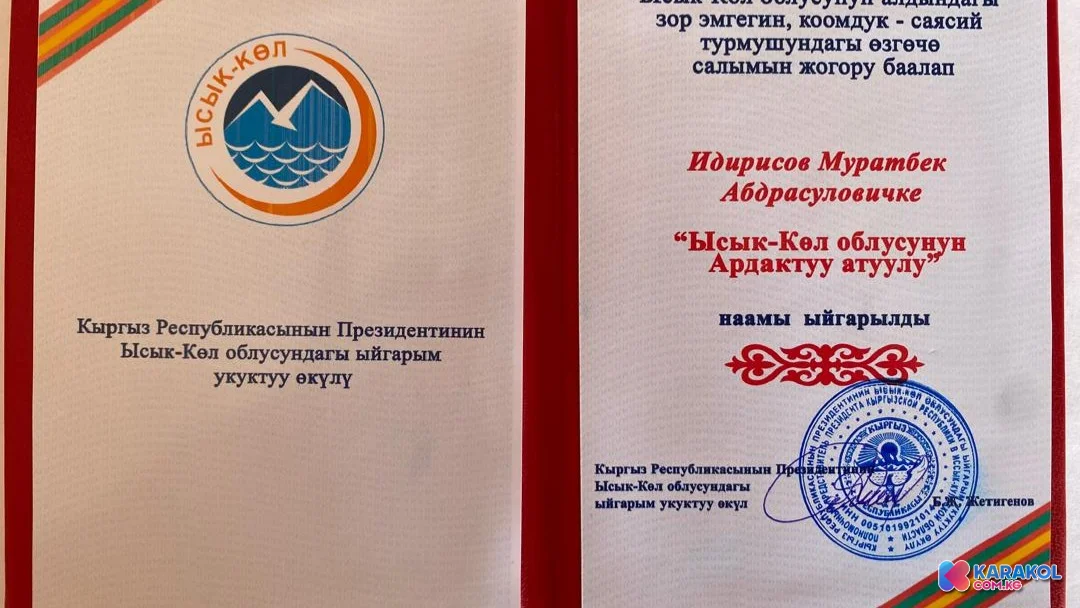Муратбек Идирисовго «Ысык-Көл облусунун ардактуу атуулу» наамы ыйгарылды